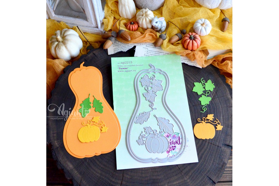 Размеры вырубки: тыквы - 191*104 mm., 170*95 mm., 56*47 mm., листья тыквы - 76*47 mm., дубовые листья - 50*21 mm., 41*18 mm.